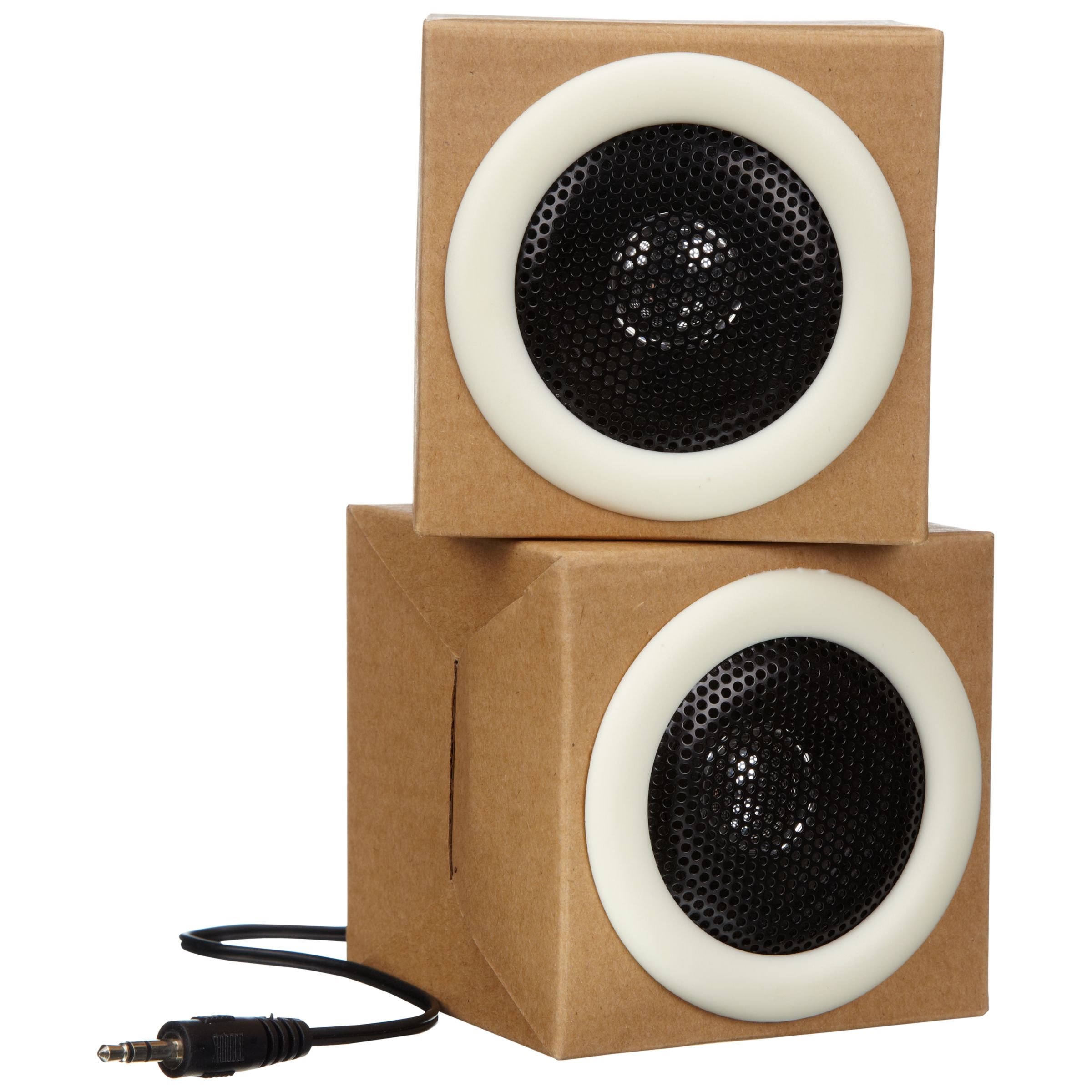 carboard speakers: These speakers can be used to listen to music from any device that has a 3.5mm audio jack plug-in, can also be drawn on as they are made from cardboard, you can also buy a cardboard radio, cool