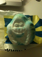 "abombinaball", this is a bath bomb, it has pepermint, vanillla and orange scents, he is so cute.